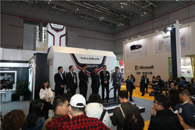 首屆中國國際進(jìn)口博覽會上“噸位”最大的展品——德國機(jī)床設(shè)備“金牛座”龍門銑在會上簽約成交。這是中德雙方代表在新聞發(fā)布會上回答媒體提問(2018年11月9日攝)。新華社 記者方喆/攝