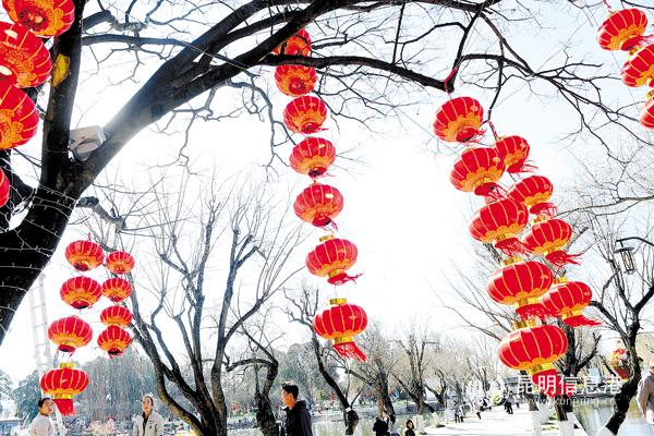 昆明信息港訊(昆明日?qǐng)?bào)) 春節(jié)將至,昆明全力營(yíng)造文明祥和歡樂喜慶的節(jié)日氛圍,各種造型鮮花布景將街頭裝扮一新,公園、商場(chǎng)、主要道路上大紅燈籠高高掛,烘托出紅紅火火的過節(jié)氣氛。