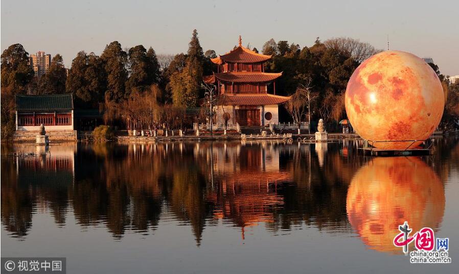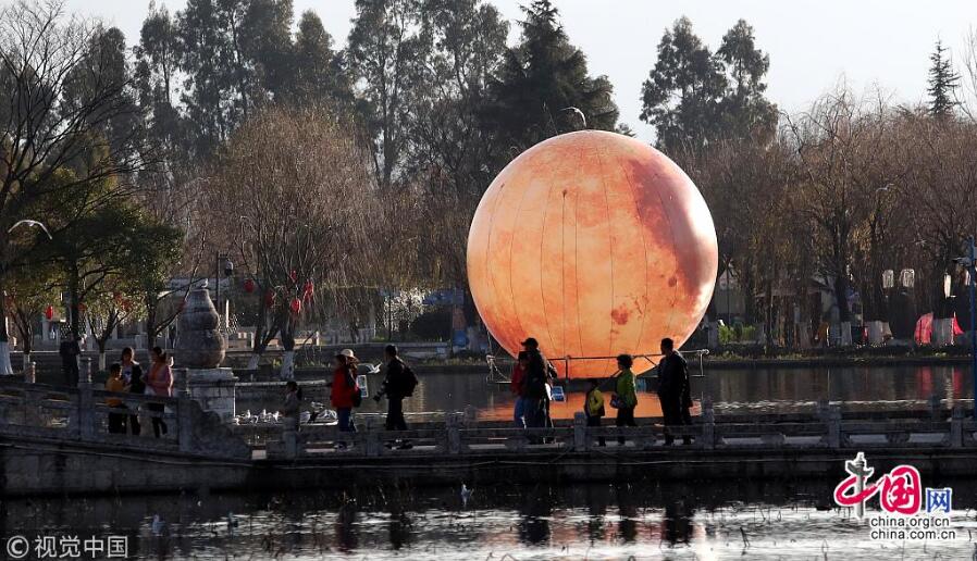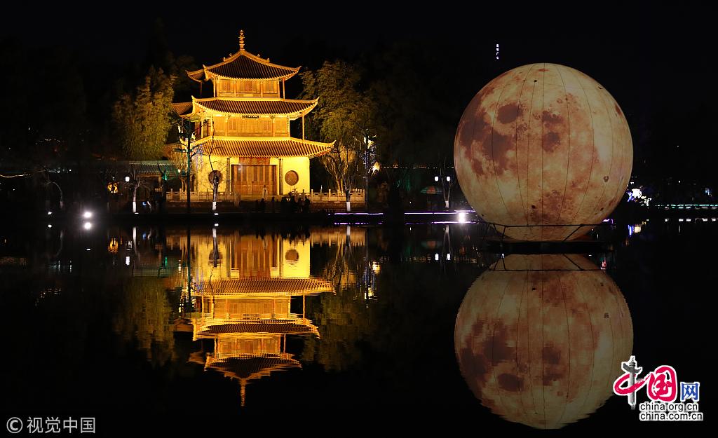 上周,云南昆明,巨型“月亮”亮相昆明大觀公園新春燈展。2019大觀公園新春燈展正式亮燈,在大觀樓三潭印月水域,一個直徑8米、高12米的巨型“月亮”,形成“月映名樓”的獨特景觀。