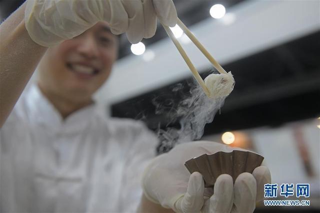1月25日,一名參展者在新加坡展覽中心舉行的傳統(tǒng)咖啡、茶與小吃展上制作創(chuàng)意急凍龍須糖。新華社發(fā) (鄧智煒/攝)