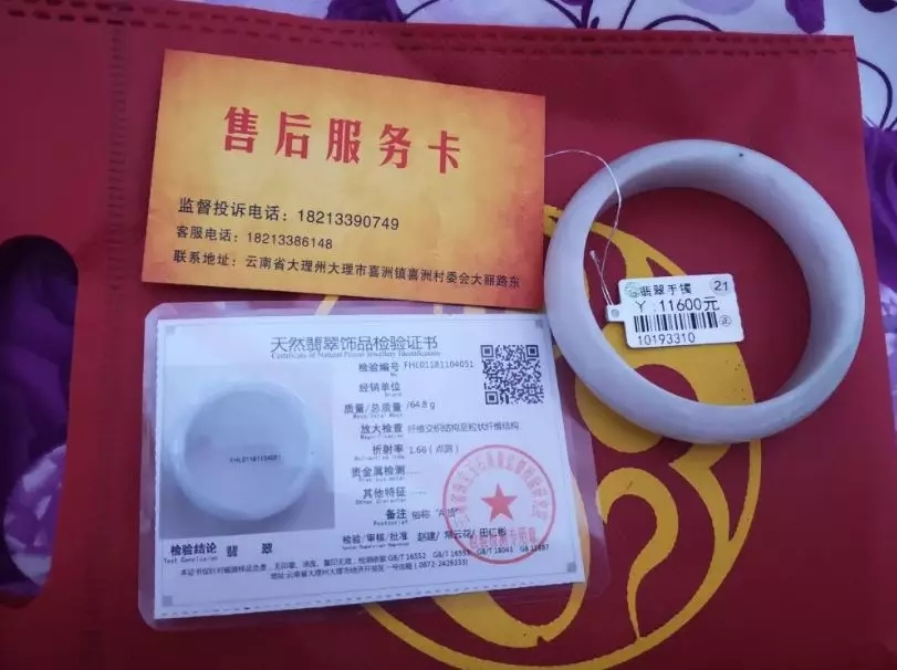 經(jīng)了解,1月23日,在網(wǎng)上留言的馮先生跟隨旅行社來到喜洲鎮(zhèn)參觀白族民居和觀看三道茶表演的時(shí)候,在福寶軒工藝品店購買了一支翡翠手鐲,價(jià)格為11600元。回家后經(jīng)朋友解讀覺得翡翠價(jià)格偏高,于是便在人民網(wǎng)地方領(lǐng)導(dǎo)留言板留言。