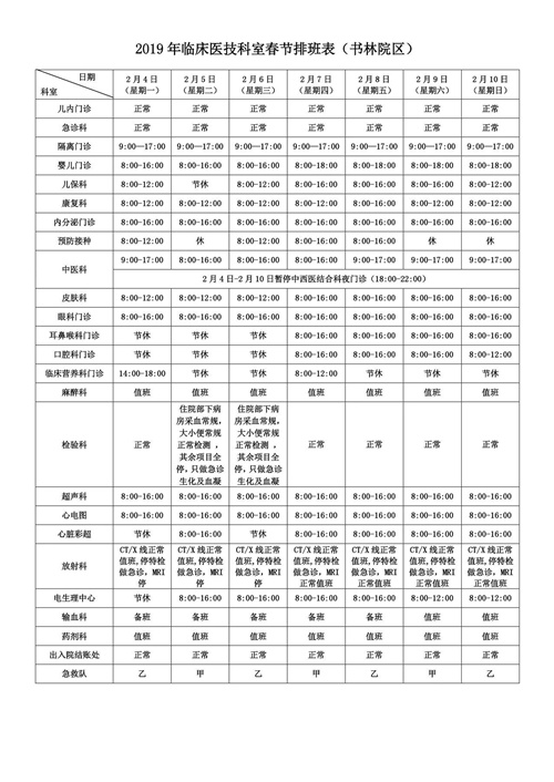2019年春節(jié)(2月4日至2月10日)門急診出診安排: