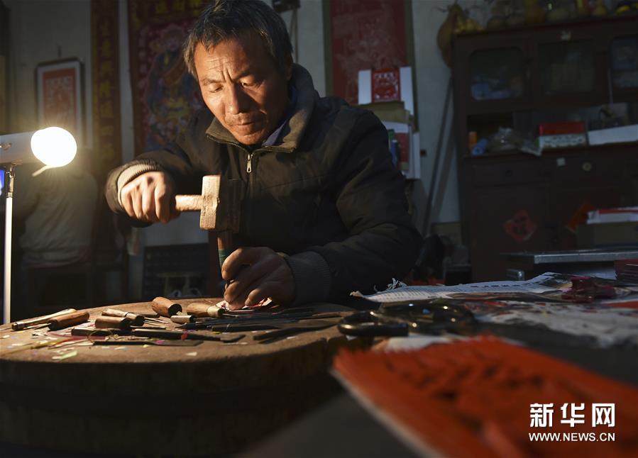 1月30日,民間藝人史龍江制作“過門箋”。