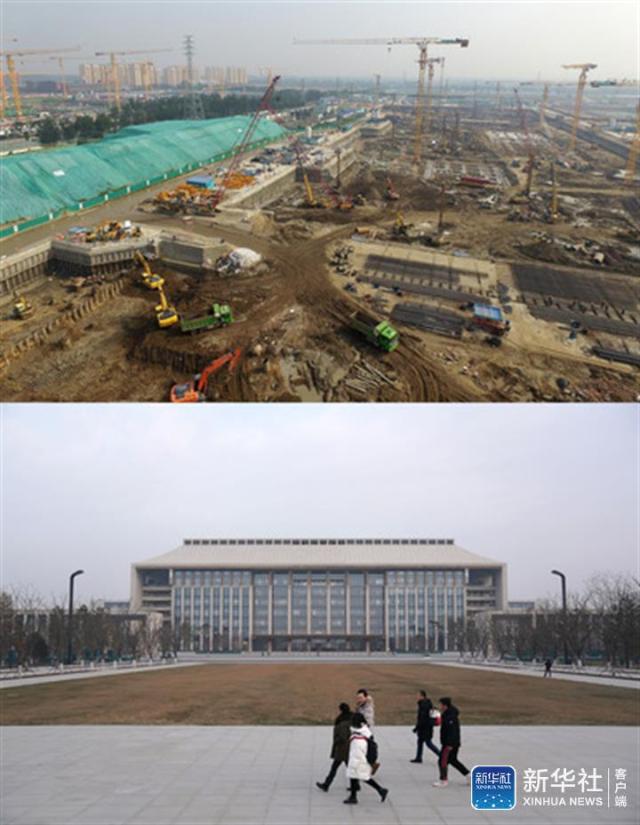 ↑拼版照片:上圖為2016年9月30日拍攝的建設(shè)中的北京城市副中心行政辦公區(qū)工程;下圖為2019年1月11日拍攝的中國(guó)共產(chǎn)黨北京市委員會(huì)辦公樓。2019年1月11日,北京市級(jí)行政中心正式遷入北京城市副中心(新華社記者鞠煥宗/攝)。