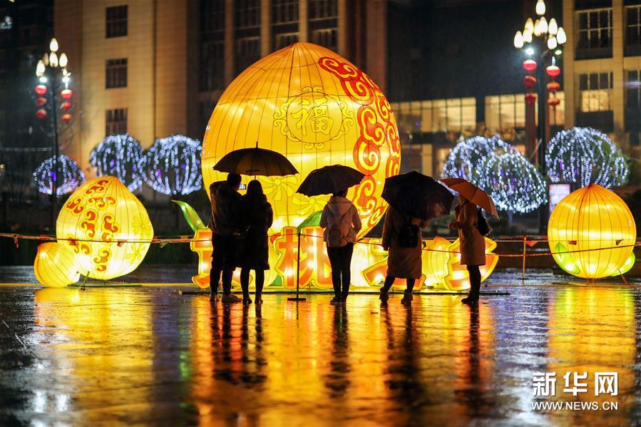 1月30日,人們在貴州省銅仁市玉屏侗族自治縣舞陽廣場上觀賞彩燈。新華社發(fā) 胡攀學(xué)/攝