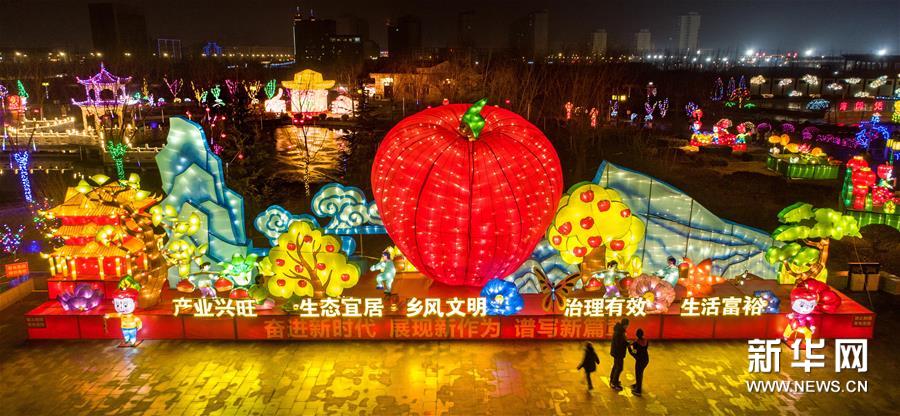 1月30日,人們在山西省萬榮縣寶鼎公園觀賞花燈。新華社發(fā) 薛俊/攝