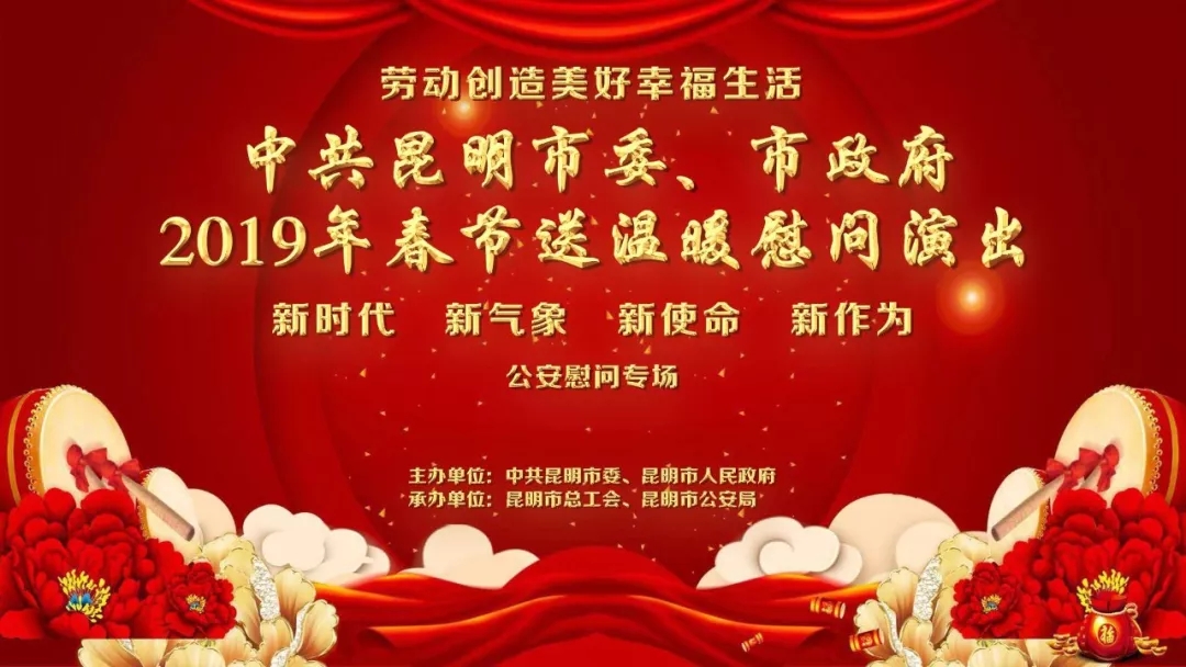 今晚8點(diǎn),由中共昆明市委、昆明市人民政府主辦,昆明市總工會、昆明市公安局承辦的2019年春節(jié)送溫暖慰問演出公安專場將在昆明市工人文化宮舉行。屆時,昆明警方將通過直播形式將現(xiàn)場盛況分享給大家,敬請收看!