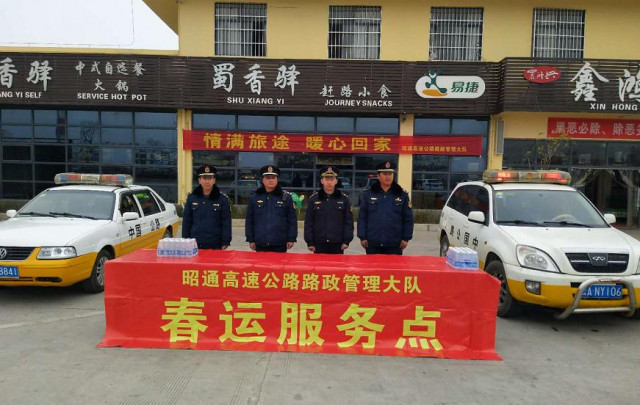 臨近春節(jié),昭通境內高速公路上往返車輛明顯增多,昭通高速路政大隊為了給春運期間返鄉(xiāng)人員及過往車輛提供更好的便利服務,從1月30日至春運結束,每天派3名路政員在昭通南服務區(qū)設置的“春運服務點”為返鄉(xiāng)人員及車輛提供便民服務。