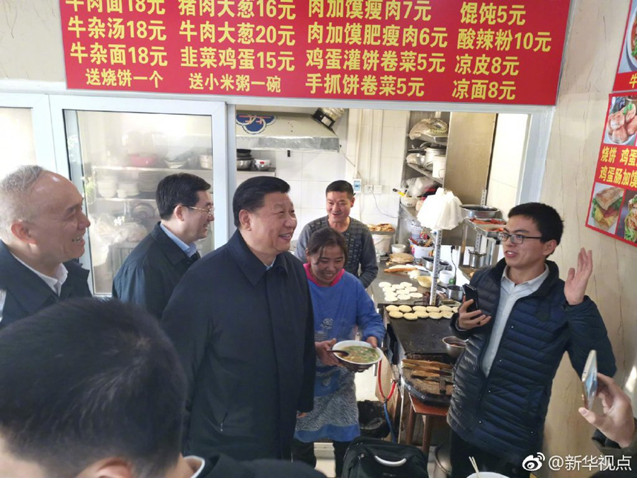 2月1日中午,習近平結(jié)束在北京市前門東區(qū)看望慰問乘車返回途中,特意走進位于前門石頭胡同的快遞服務(wù)點、小吃店,看望仍在工作的“快遞小哥”等勞動者,了解他們工作和生活情況。