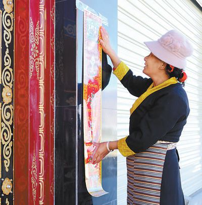 尼瑪普赤說,過年前,漢族有貼春聯(lián)和窗花的習(xí)俗,以表達(dá)吉祥、美好的愿望,而藏族也保持著換白色“香布”(“藏式門簾”)的傳統(tǒng),祝愿新的一年吉祥如意。