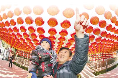 山東煙臺(tái)市毓璜頂公園,市民在觀賞紅燈籠。唐 克攝(影像中國(guó))