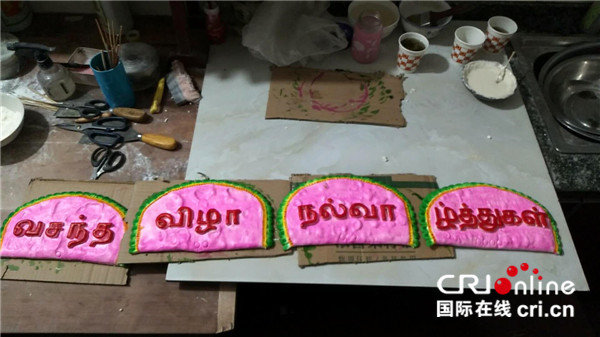 為網(wǎng)絡(luò)直播節(jié)目特別制作的外文版“新春快樂(lè)”。(攝影:張捷)