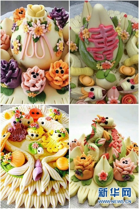 一套面塑為宴席錦上添花。(新華網 曹楨攝)