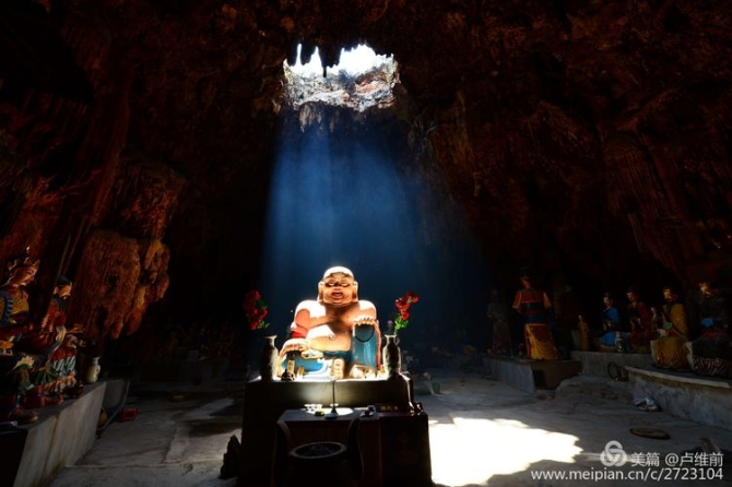 當(dāng)“玉帶”如煙般飛出顏洞,回望向透著頂光的仙人洞作別時,天柱塔高高地站在“石漠山”向其揮了揮手。
