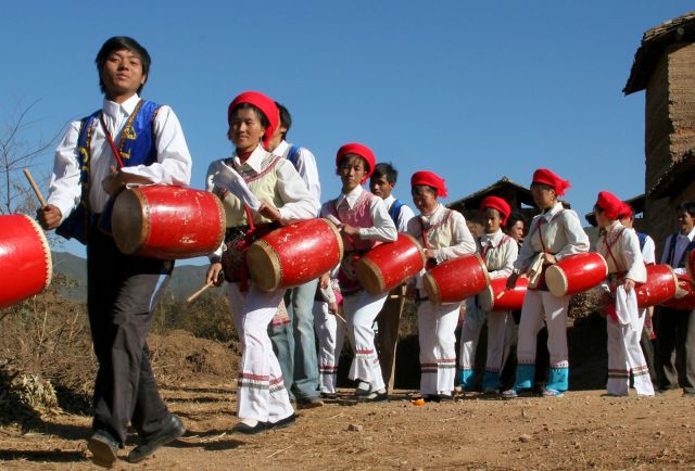 農(nóng)歷春節(jié)即將來臨,云南昆明晉寧縣雙河彝族鄉(xiāng)田壩村的年俗活動(dòng)逐漸掀起高潮,其中用鼓、鑼、镲和“龍頭”等器物表演的秧佬鼓最具民族特色,起初是當(dāng)?shù)匾妥迕耖g的祭祀活動(dòng),現(xiàn)在每逢節(jié)日或重大慶典都會(huì)表演。