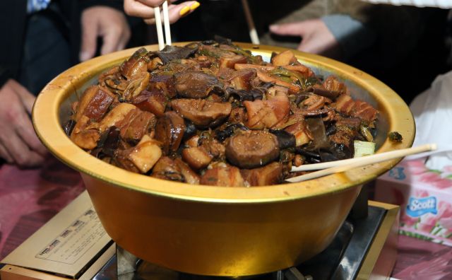 這是大埔頭圍村村民準(zhǔn)備享用的盆菜。