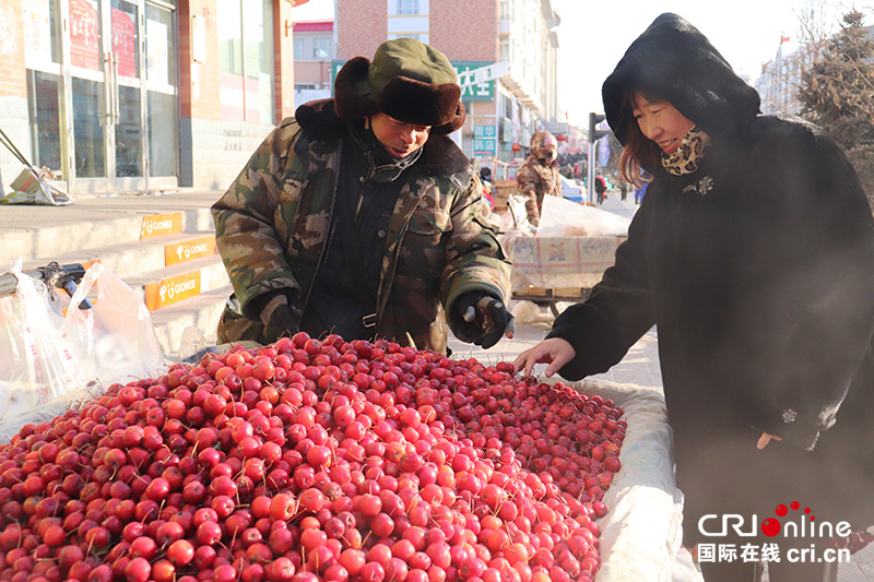 凍花紅是一種沙果,酸甜爽口,與凍梨、凍柿子一起成為很多人必選的“凍三樣”