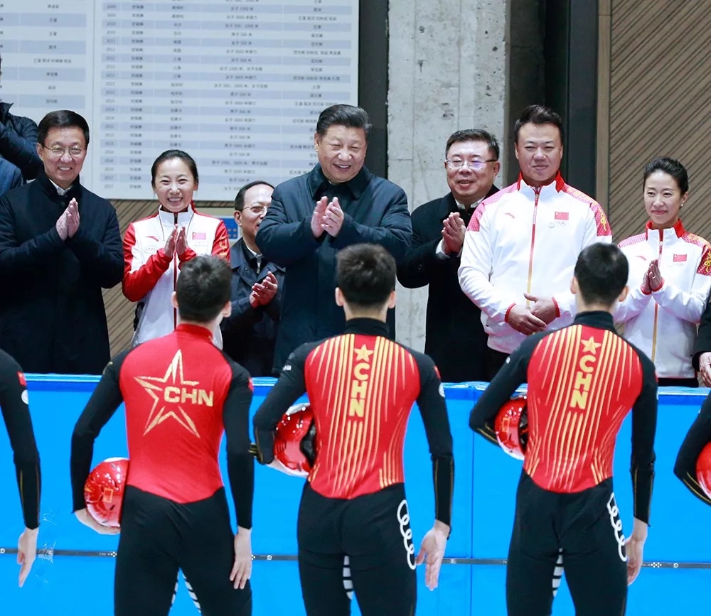 在冬奧組委辦公樓,習(xí)近平看望慰問北京冬奧組委工作人員和志愿者代表。在國家冬季運(yùn)動(dòng)訓(xùn)練中心,習(xí)近平察看國家速滑隊(duì)、花滑隊(duì)、冰壺隊(duì)訓(xùn)練備戰(zhàn)情況,勉勵(lì)大家刻苦訓(xùn)練、全力備戰(zhàn)、勇攀高峰。