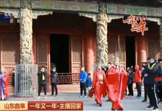 央視網(wǎng)消息:新聞?lì)l道播一年,今天回家過(guò)個(gè)年。各位觀眾朋友,大家過(guò)年好!我現(xiàn)在是在山東曲阜帶大家感受一下在孔子故里過(guò)年是什么滋味。剛剛伴隨著聲聲晨鐘,我身后孔廟的大門也正式打開(kāi),看我今天穿的這身行頭啊,今天我就扮演一把禮生,帶大家感受一下祭孔展演的魅力。