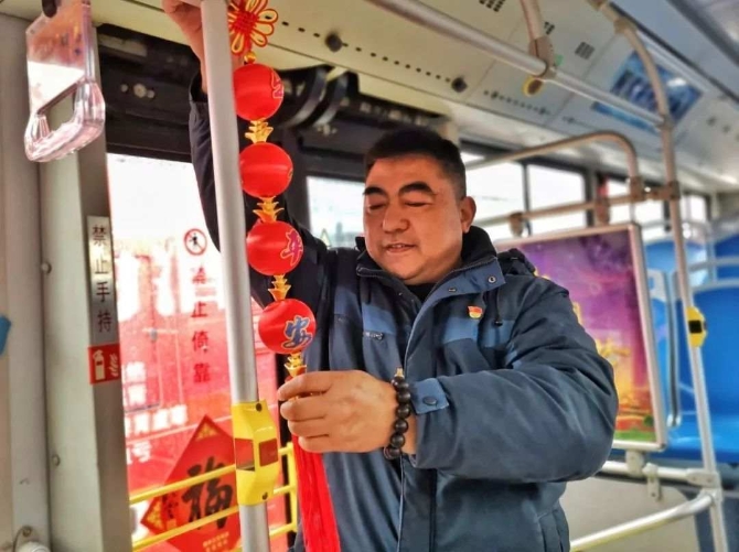 要過年了,揚(yáng)子公交駕駛員徐廣寶給自己的“愛車”掛上燈籠。像他這樣春節(jié)期間一直堅(jiān)守崗位的公交駕駛員,還有很多很多。
