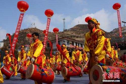 蘭州“百合村”村民演繹恢弘太平鼓。李浩 攝