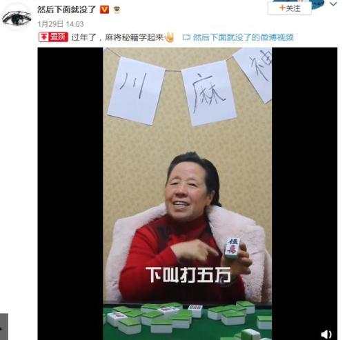 來四川成都走一走,除了聞到臘味兒香,應該還能看到很多人家的麻將桌。作為春節(jié)的必備娛樂項目,親朋好友一相聚,不打個通宵怎么行?“寧挨千刀剮,不胡第一把,幺雞二條,不打要遭,八萬九萬,不打輸完,有四不打一,二五先打八……”最近,一位四川奶奶就用Rap向全國網友傳授了一段打麻將秘訣。