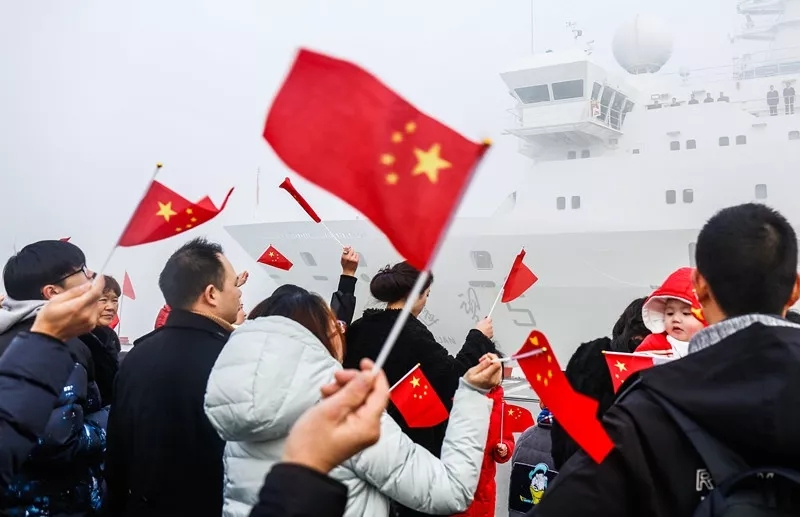 2月4日,恰逢農(nóng)歷除夕,圓滿完成“中星2D”衛(wèi)星海上測控任務(wù)的遠(yuǎn)望5號船勝利凱旋。