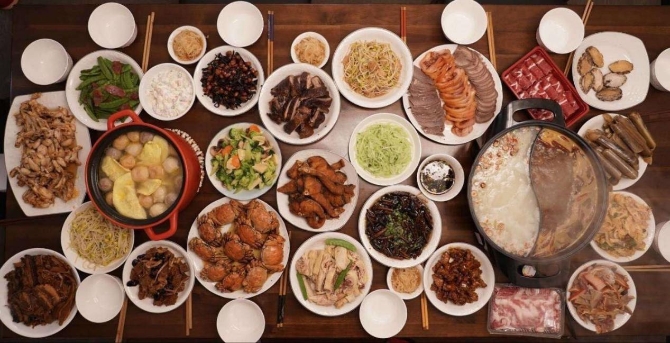 今年,小可家的年夜飯,酥魚、蛋餃還是老上海的風(fēng)味,清蒸的大閘蟹少了濃油多了鮮香,火鍋里下的蔬菜海鮮種類繁多,葷素搭配。