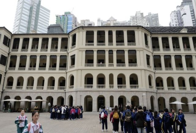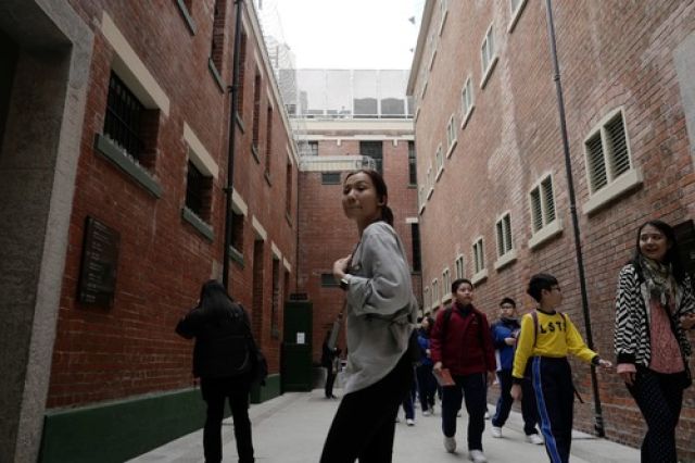 在香港港島,旅客在參觀前身為中區(qū)警署建筑群的“大館”。新華社記者王申攝