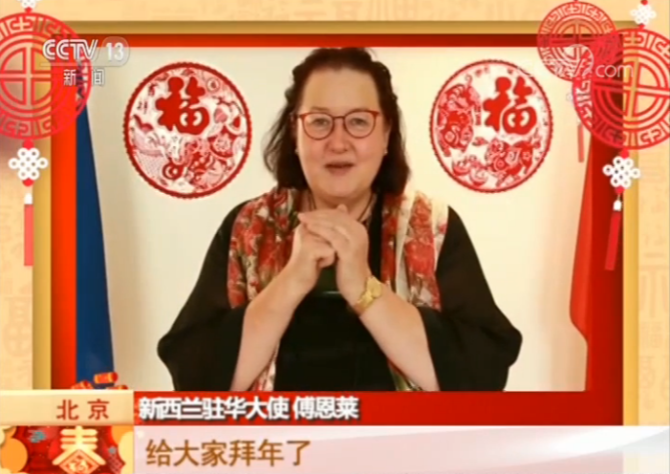 新西蘭駐華大使 傅恩萊:我想祝所有的中國朋友們全家幸福!給大家拜年了!