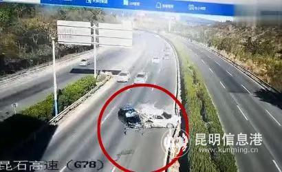 昆明信息港訊 記者合宇聰 2月6日,記者從云南省公安廳交警總隊(duì)高速公路交巡警支隊(duì)獲悉,5日(大年初一)上午,一輛轎車在昆石高速公路半截河路段由于駛過高速出口后,直接在快車道內(nèi)倒車引發(fā)兩車相撞慘烈交通事故。