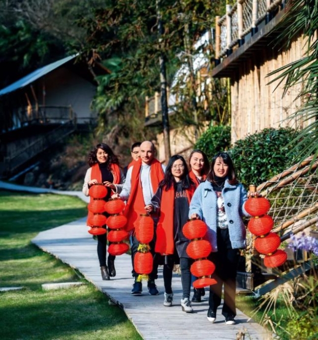 ↑浙江省杭州市臨安區(qū)的鄉(xiāng)村民宿——“慕仁民宿”迎來一批外國友人 徐昱攝