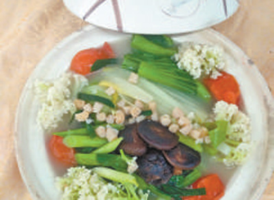正月初七,潮汕獨具特色的“七樣羹”食俗廣受歡迎。七樣羹主要食材各有寓意。芥菜(大菜)寓意“大財”,厚合菜寓意百事合想,芹菜寓意勤勞致富,大蒜寓意會算數(shù)有錢賺,韭菜寓意長長久久,春菜寓意春回大地。潮汕話中“各人”發(fā)音跟普通話的“芥藍”相似。