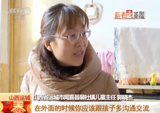 我國從2016年開始對全國留守兒童進行摸底調(diào)查,繼而開始推動基層兒童工作隊伍建設(shè),目前全國已經(jīng)有62.5萬名村居兒童主任,在兜底保障近700萬留守兒童的生活。春節(jié)前,新春走基層的記者來到山西省運城市聞喜縣,這里是我國最早設(shè)立兒童主任的試點地區(qū),郭曉杰就是一位守護100多名留守兒童的村居兒童主任。