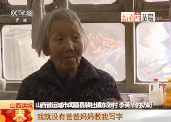 山西省運城市聞喜縣裴社鎮(zhèn)東張村 李英華奶奶:(孩子說)人家都有爸爸媽媽教寫字,我就沒有爸爸媽媽教我寫字,人家都有微信你就沒有微信,我說奶奶沒有微信奶奶跟老師說一下。