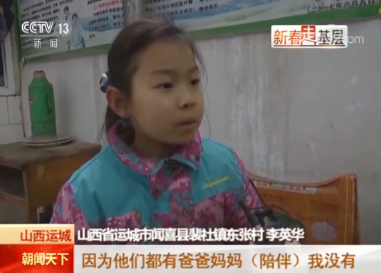 山西省運城市聞喜縣裴社鎮(zhèn)東張村 李英華:因為他們都有爸爸媽媽(陪伴),我沒有。