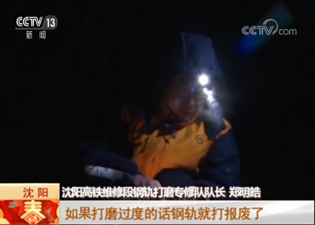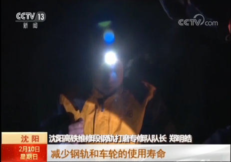 沈陽高鐵維修段鋼軌打磨專修隊隊長 鄭明皓:列車高速行駛時,鐵軌上任何細小的裂縫都會引起強烈的晃動,不僅旅客會感到不舒服,列車運行安全隱患,還會給鋼軌和車輪帶來傷損,減少鋼軌和車輪的使用壽命,所以,必須確保鋼軌軌面平順。