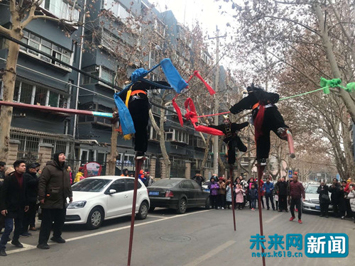 山東濟(jì)南 高蹺隊(duì)走進(jìn)小區(qū)送歡樂(lè)