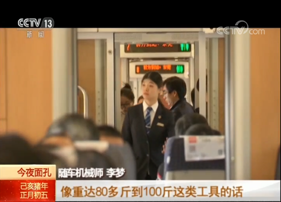今天我們要認(rèn)識一位95后女孩,李夢。在工作中同事稱她為女漢子,這是因為她工作的崗位,她是廣州動車段唯一的一名女隨車機械師。今年,李夢是第一次以隨車機械師的身份參加春運,因為一列動車只配備一名機械師,她需要對動車可能出現(xiàn)的故障進行判斷、處理和反饋。工作強度非常大,操作的工具有些可能有幾十上百斤重,非常沉。頭一回跑春運,又是單兵作業(yè),面對各種情況,這對李夢一個女孩來說吃得消嗎?