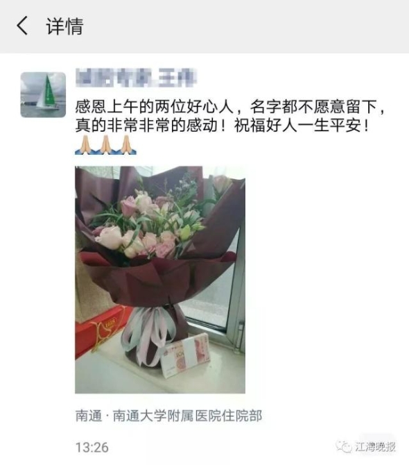 通大附院血液內(nèi)科主任劉紅教授在她的朋友圈發(fā)了這段話:“在這個寒冷的冬季,總有那么多暖心的花絮讓人感動,祝好人一生平安。”