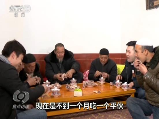 吃平伙是東鄉(xiāng)族老百姓的一個(gè)傳統(tǒng),就是大家買(mǎi)一只羊,平攤價(jià)格以后搭伙吃羊肉。過(guò)去,只有家里娶媳婦、蓋房子這樣的大事,才能吃個(gè)平伙?,F(xiàn)在生活好了,家里請(qǐng)客的時(shí)候也吃平伙,今天,馬麥志要請(qǐng)客,不用大家出份子錢(qián)了。他說(shuō)大兒子在外面打工,自己在干清潔工,媳婦在車間里面炸油馃馃,收入應(yīng)該有3萬(wàn)多元。