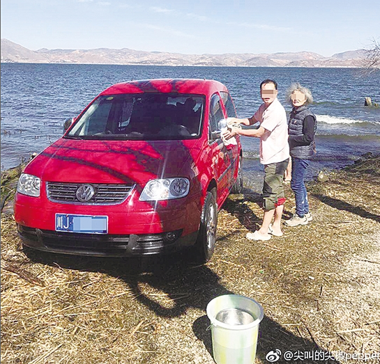 據(jù)大理市公安局洱海派出所所長(zhǎng)李張執(zhí)介紹,7日晚在微博上發(fā)現(xiàn)信息后,大理市洱海管理局、大理市公安局洱海派出所立即介入調(diào)查,并逐級(jí)上報(bào)。警方得知此事后,及時(shí)確定了該輛川A牌照車輛,并立即聯(lián)系車主本人。經(jīng)多方聯(lián)系后確認(rèn),車主將車借給了朋友開。8日早上,警方聯(lián)系到當(dāng)事人,得知其已離開大理前往嵩明,就通知他立即返回。