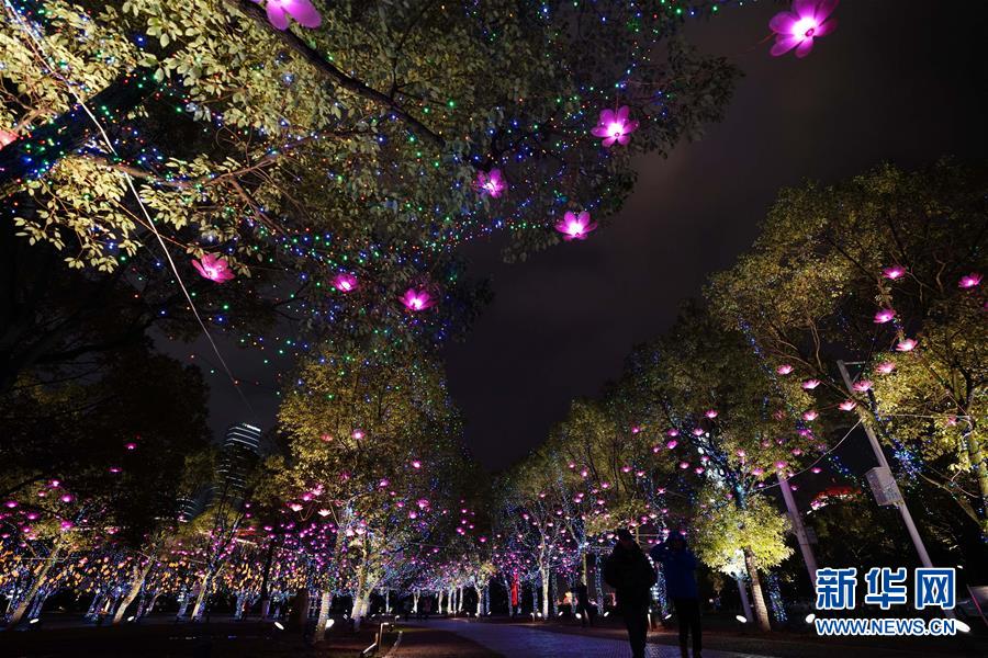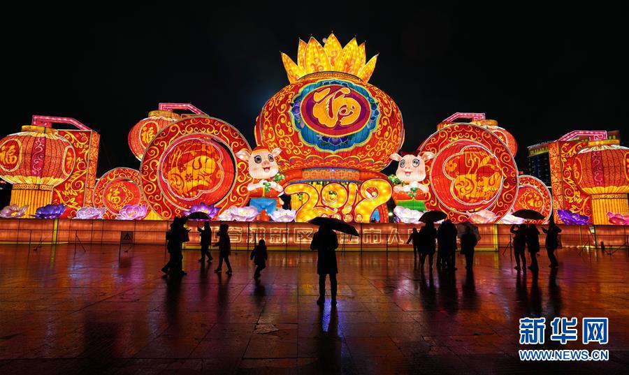2月8日,市民在南昌市紅谷灘行政廣場欣賞“歡度新春”大型藝術彩燈。