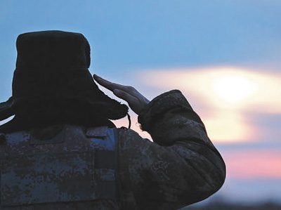 東極哨所官兵對(duì)著家鄉(xiāng)的方向敬禮。徐 輝攝(人民視覺)