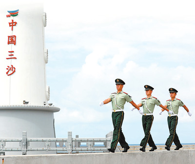 駐守三沙永興島的武警官兵在碼頭巡邏。雷 轍攝(人民視覺)