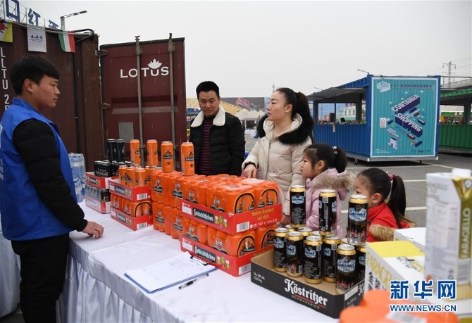 1月27日,消費者在西安中歐班列年貨節(jié)上選購。當天,X9020次中歐班列滿載商品抵達西安新筑車站,這是2019年以來抵達西安的第29趟“洋年貨”專列。 新華社 記者李一博/攝