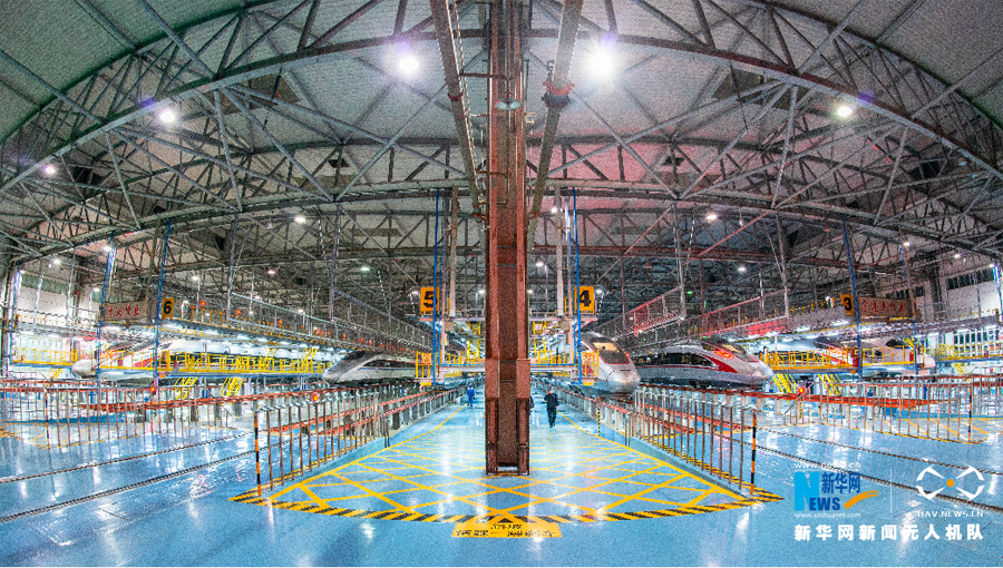 為保障春運(yùn)期間高鐵運(yùn)輸安全,廣州動車段工作人員精檢細(xì)修,全力提高“復(fù)興號”動車組的檢修質(zhì)量,對車體轉(zhuǎn)向架進(jìn)行保溫、檢修等作業(yè)。新華網(wǎng)發(fā) (曾小賢/攝)