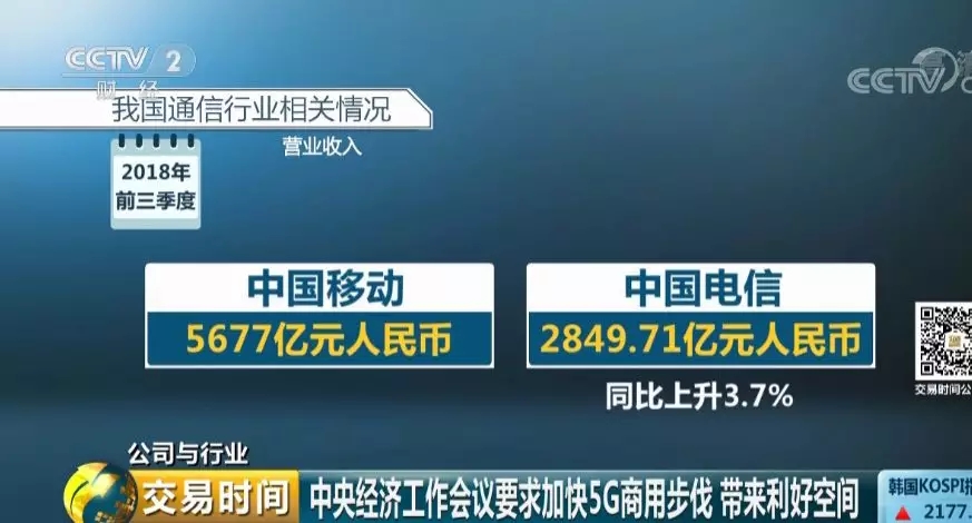 中國移動前三季度經營收入達5677億元人民幣,中國電信為2849.71億元人民幣,同比上升3.7%。