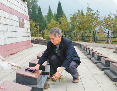 王啟榮為烈士擦墓碑。凌箐璐/攝