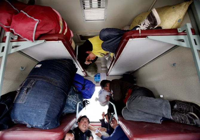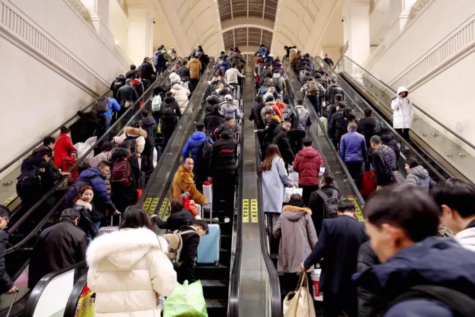 ?春運返程中的人們。